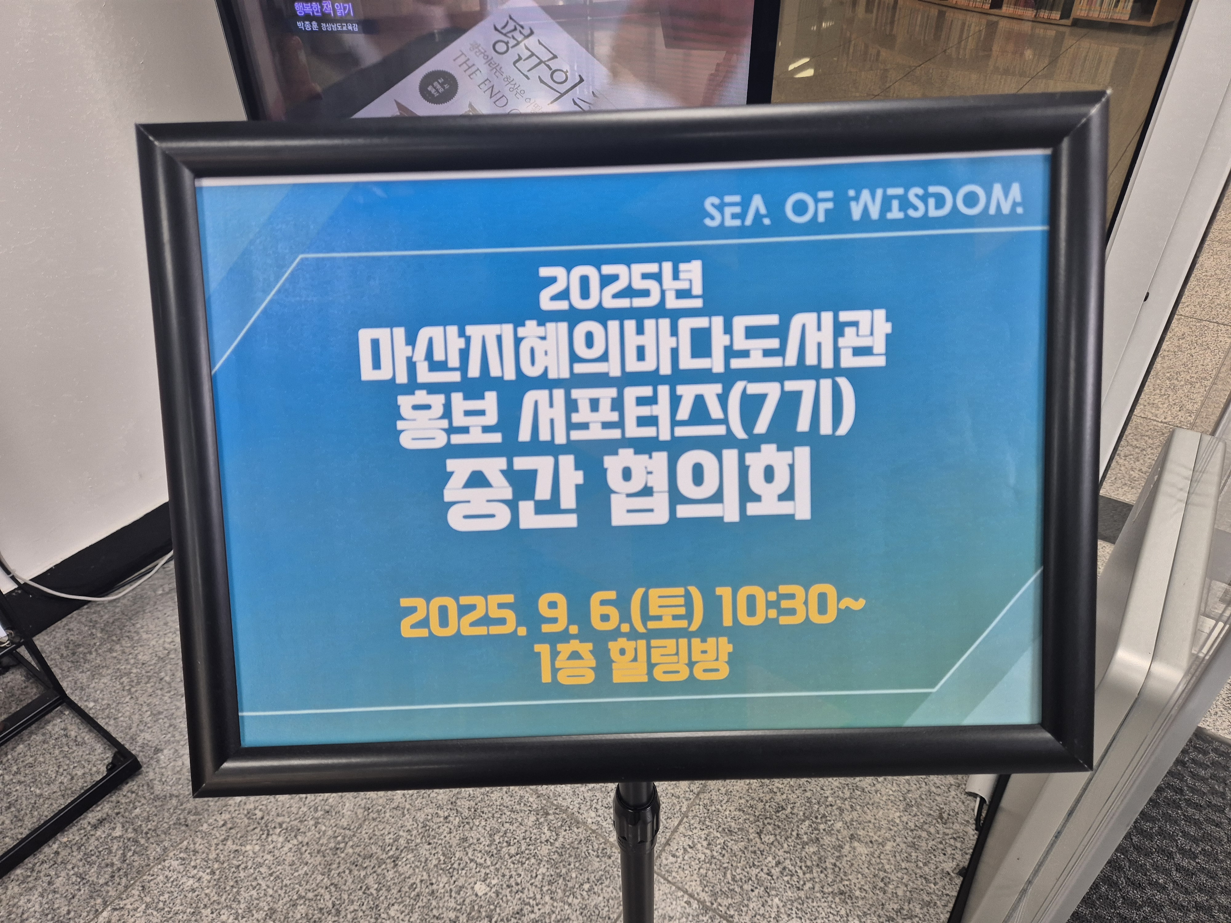 시간은 언제나 우리와 상의도 없이 홀로 쑥~흘러갑니다. 9월의 시작이 엊그제 같은데 마지막날입니다. 아주 어리둥절해하고 있습니다. 그렇다 보니 9월 초에 마산지혜의바다도서관 홍보 서포터즈 중간 협의회에 다녀오고도 내일, 내일 하며 미뤘던 글을 이제야 씁니다.😂