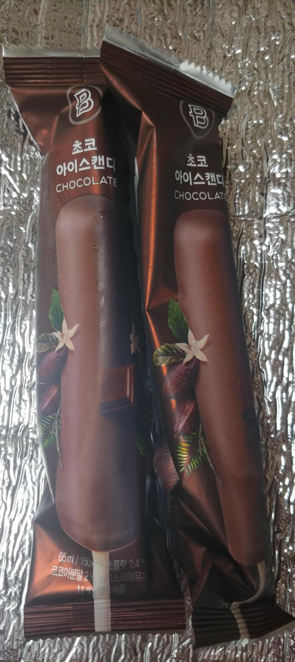 아들이 제일 먼저 초코 아이스캔디를 뜯어 먹었습니다.